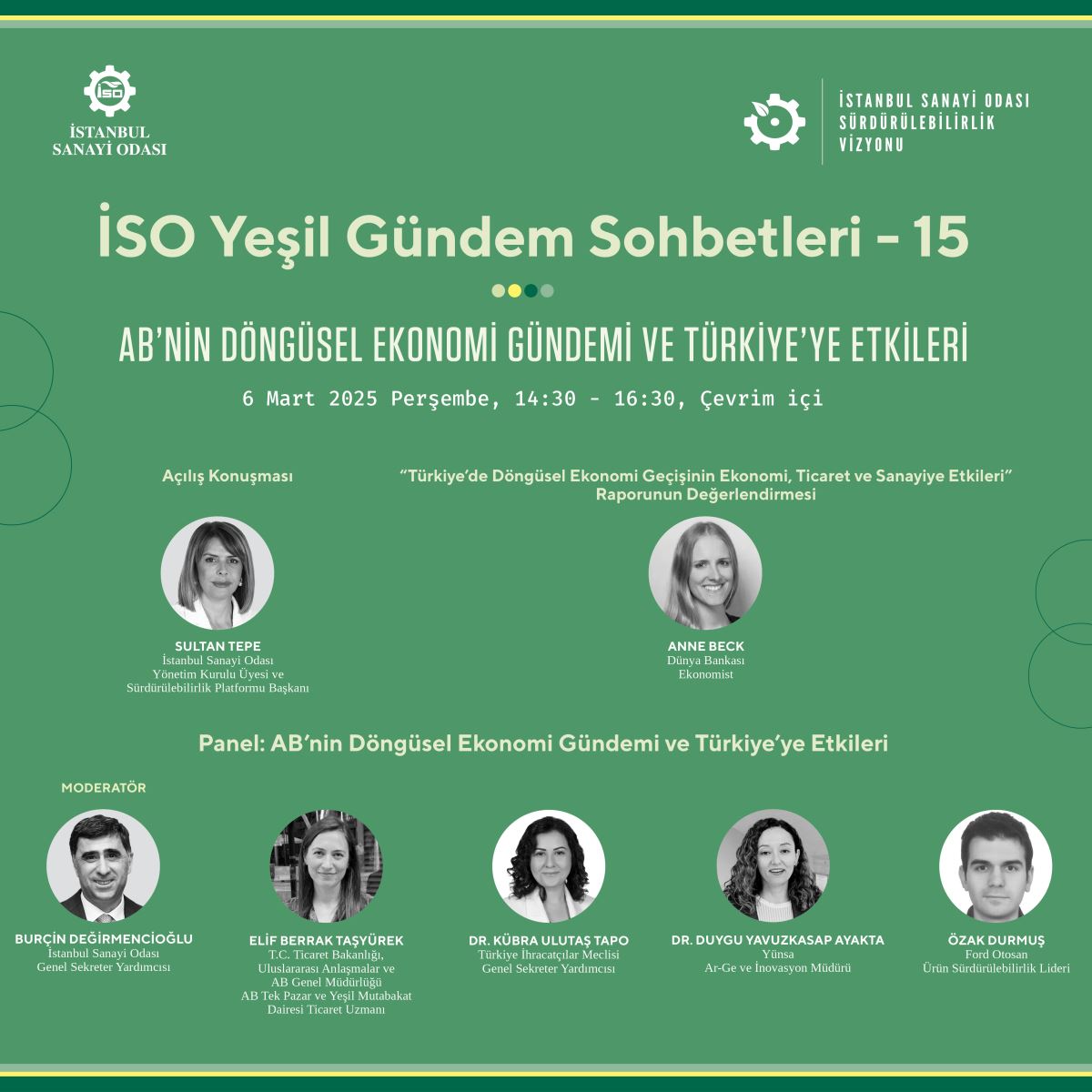 Yünsa olarak, İstanbul Sanayi Odası tarafından düzenlenen İSO Yeşil Gündem Sohbetleri 15: AB’nin Döngüsel Ekonomi Gündemi ve Türkiye’ye Etkileri paneline Ar-Ge ve İnovasyon Müdürümüz Duygu Yavuzkasap Ayakta katıldı. Panelde, tekstil sektöründe döngüsel ekonomiye yönelik gelişmeler ve Yünsa’nın iyi uygulama örnekleri ele alındı. 📺 Yayın kaydına aşağıdaki bağlantıdan ulaşabilirsiniz: